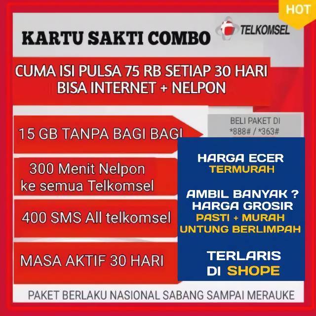 Jual Nomor cantik SAKTI COMBO TELKOMSEL kartu perdana ... from ecs7.tokopedia.net We did not find results for: Check spelling or type a new query. Maybe you would like to learn more about one of these?